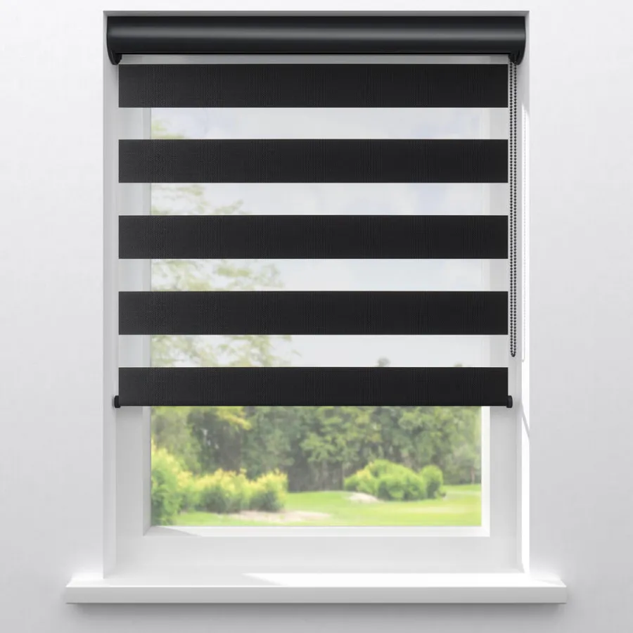 Duo rolgordijn Fedde is een rolgordijn in de kleur zwart. Hierbij worden transparante en zwarte ondoorzichtige stroken afgewisseld. Zo kun je gemakkelijk de lichtinval regelen, en meer privacy creëren in jouw woonkamer of keuken. Dankzij de stofeigenschappen van polyester is het rolgordijn makkelijk schoon te maken met een vochtige doek.