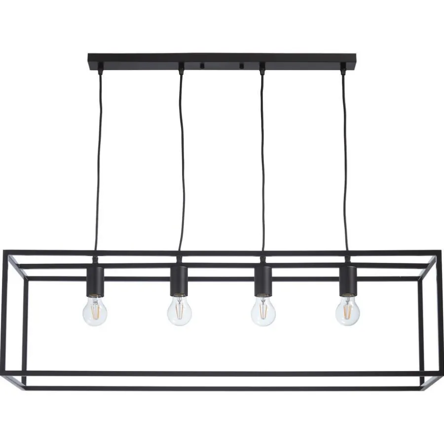 Hanglamp met rechthoekig zwart metalen frame. 100x29x130 cm (lxbxh).