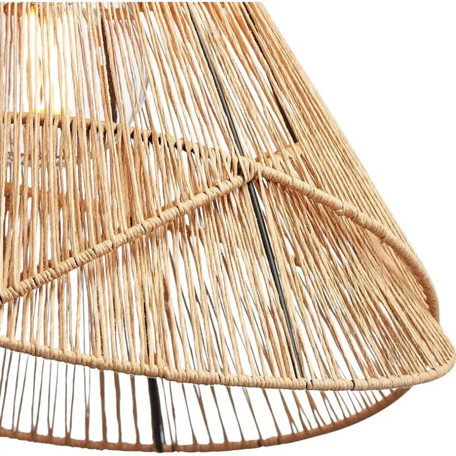 Hanglamp van touw met opengewerkt dessin en zwarte snoer. E27 fitting. 30×30 cm (lxb). Snoerlengte 120 cm.