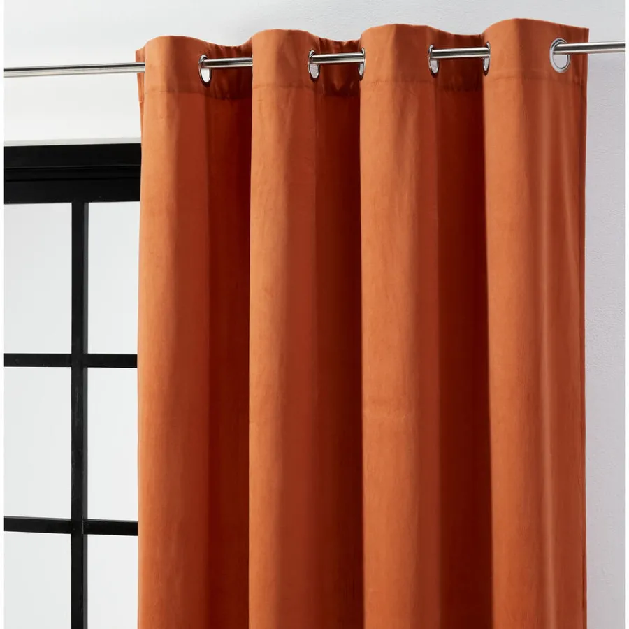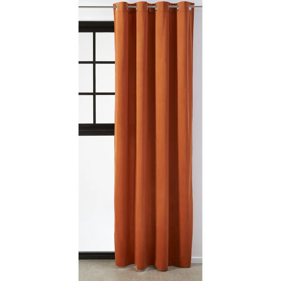 Lichtdoorlatend kant en klaar gordijn terrakleurig. Inclusief ringen. 140×260 cm (bxl).