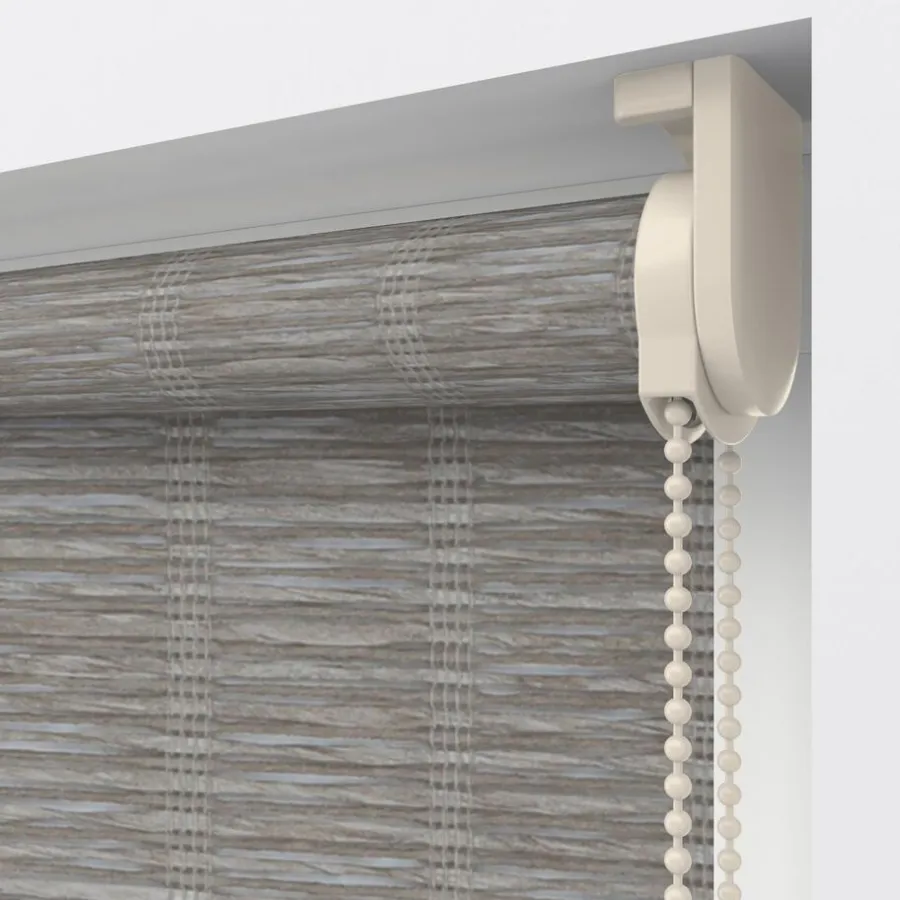 Transparant rolgordijn taupekleurig met kenmerkende structuur. Op maat te maken en volledig naar wens samen te stellen met een ruime keuze uit accessoires en uitvoeringen. Elektrische bediening en zijgeleiding is mogelijk. Ook geschikt voor draaikiepramen.