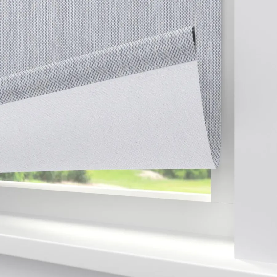 Verduisterend rolgordijn lichtgrijs gemêleerd met verticale garens. De witte achterzijde zorgt voor volledige verduistering. Ideaal voor slaapkamers maar ook te gebruiken voor keukens en andere woonruimtes. Op maat te maken en volledig naar wens samen te stellen met een ruime keuze uit accessoires en uitvoeringen. Elektrische bediening en zijgeleiding is mogelijk. Ook geschikt voor draaikiepramen. Eenvoudig met een vochtige doek af te nemen.