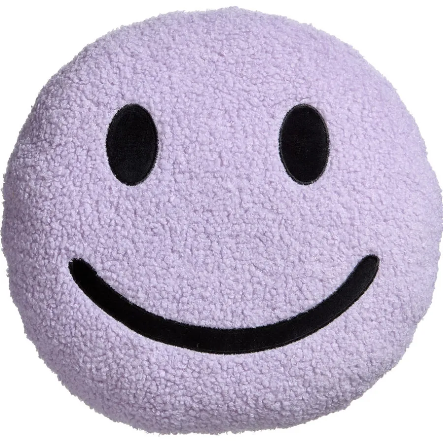 Voeg een speelse sfeer toe aan jouw interieur met dit lila Smiley sierkussen.Met een diameter van 35 cm biedt dit sfeervolle kussen comfort en stijl op jouw bank ofin de kinderkamer. Gemaakt van 100% polyester, combineert dit ronde kussen duurzaamheid meteen charmant design.