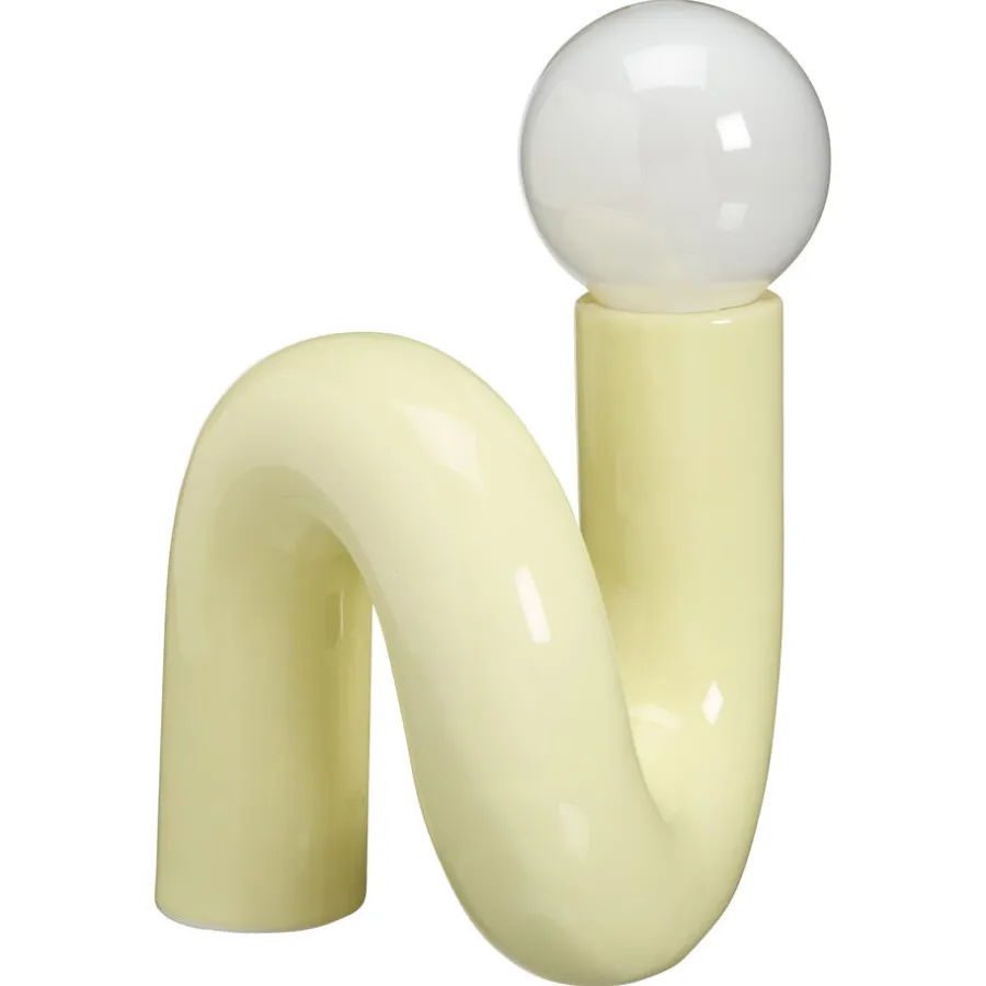 Tafellamp Sokar in gele kleur is een vrolijk lampje die je ruimte aankleedt en een mooi decoratiestuk is in in je interieur. Hij is gemaakt van keramiek en glas en heeft een organische vorm. De lamp heeft een geïntegreerde LED lamp die werkt op 2x AAA batterijen (niet meegeleverd).