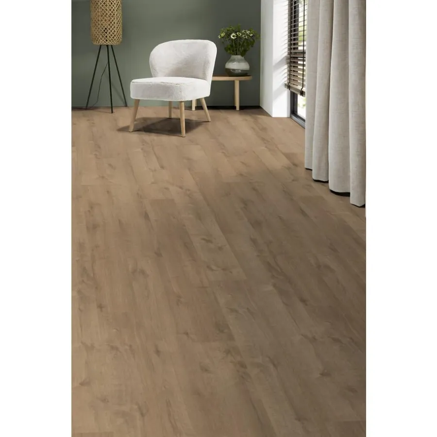 Laminaat Clinton Eiken met een dikte van 8 millimeter. Geschikt voor zeer intensief woongebruik.