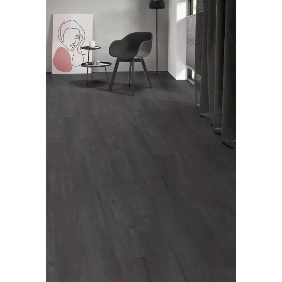 Zwart laminaat met een 4-zijdige V-groef. Dit laminaat is geschikt voor (zeer) intensief woongebruik. Dit laminaat is eenvoudig te reinigen en makkelijk in onderhoud. Daarbij is hij waterbestendig waardoor je hem in veel ruimtes kan leggen. 8 mm dik. 128,5×19,2 cm (lxb). 8 stuks. Inhoud per pak: 1,97 vierkante meter.