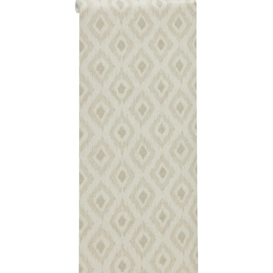 Vliesbehang Jolanda in een zand kleur met sfeervol ruit dessin. Goed afwasbaar. Voorzien van het FSC-keurmerk. Plakken met Perfax Pink. 10 meter per rol.