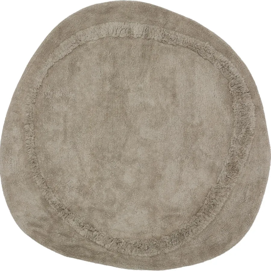 Rond vloerkleed Kuo in een greige kleur met voelbare structuur en een organische vorm. Dit vloerkleed bestaat uit getuft katoen en is handgemaakt. ø120 centimeter.