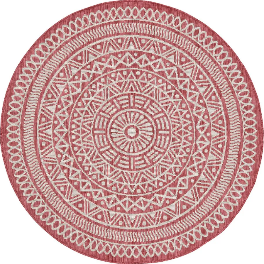 Rino is een rond vloerkleed die stijl en warmte toevoegt aan elke kamer. Met zijn roze kleur en opvallende Aztec print geeft dit vloerkleed een eigentijdse touch aan je interieur. De laagpolige textuur zorgt voor comfort en maakt dit kleed perfect geschikt voor drukbezochte ruimtes.