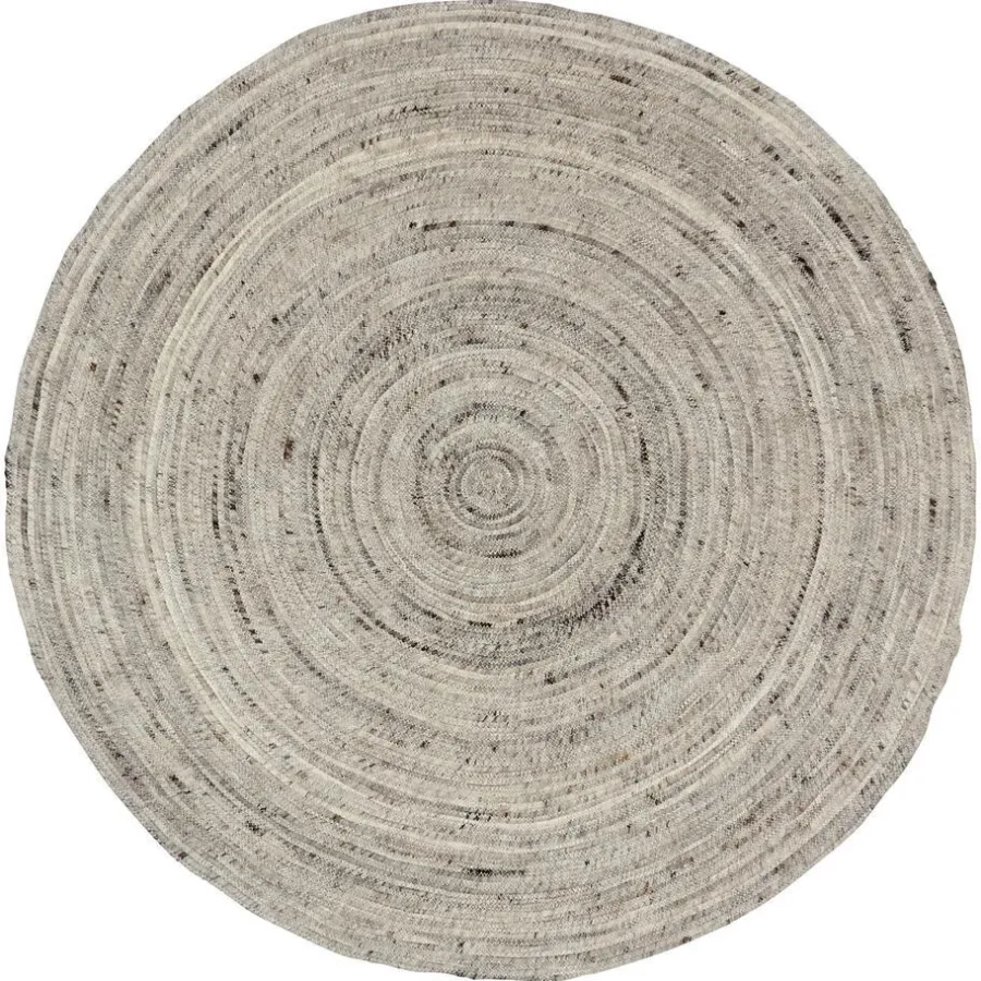 Handgemaakt rond vloerkleed van grijze wol en jute. Sterk, natuurlijk en veerkrachtig. 100 cm doorsnede.