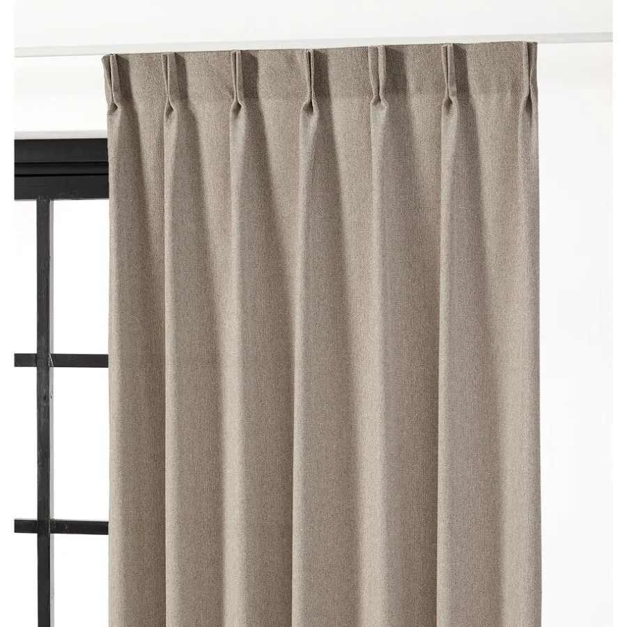 Gordijn Mark in een naturel kleur. Deze stof is gemaakt van 80% polyester en 20% polyester.