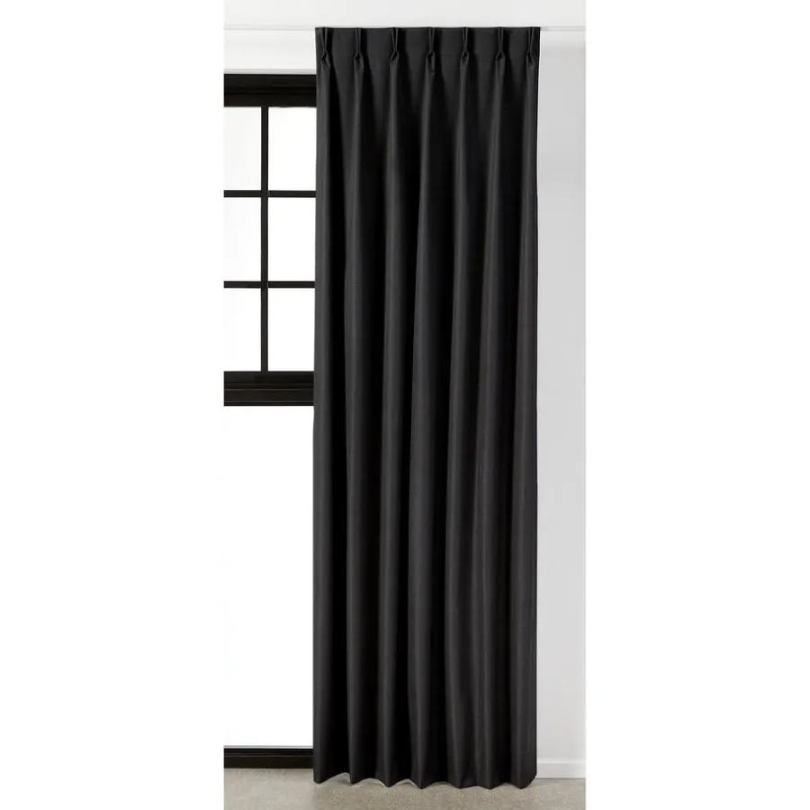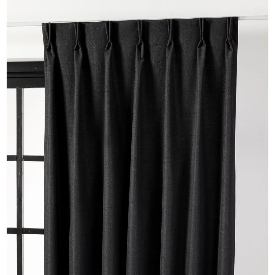 Verduisterend gordijn Phileine Antraciet heeft een lichte glans. Een prachtig overgordijn voor in de woon- of slaapkamer, maar je kan ze ook combineren met inbetween gordijnen of andere raamdecoratie. En ze passen bij ieder interieur. De gordijnstof is gemaakt van 100% polyester en is stevig en kreukherstellend. Dit black-out gordijn is aan de achterkant voorzien van een witte coating. Deze coating zorgt dat dit gordijn geen licht doorlaat en 100% verduisterend is. Daarom is de achterkant meestal wit en de voorkant is de gewone gordijnstof. Een black-out gordijn voelt wat stugger aan. Deze gordijnstof houdt, in tegenstelling tot dim-outs 100% het zonlicht tegen. Bij de confectie van deze kwaliteit kunnen kleine gaatjes ontstaan. Dit is inherent aan de stof en kan niet voorkomen worden. 145 cm breed. In diverse kleuren verkrijgbaar.