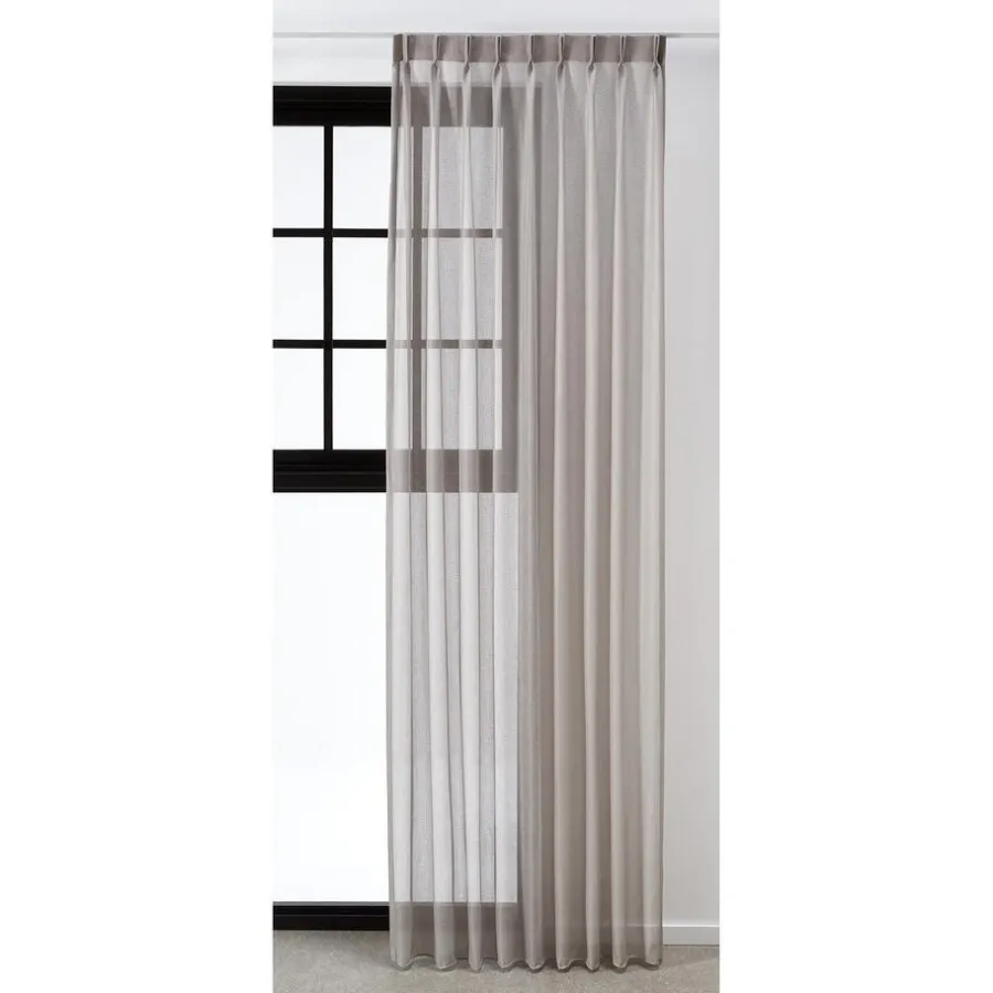 Transparante gordijnstof naturelkleurig. De lichtglanze stof heeft een subtiel opengewerkte structuur en een luxe uitstraling. Stevig, vormvast en soepel. Goed te combineren met een waveplooi maakwijze. 300 cm.