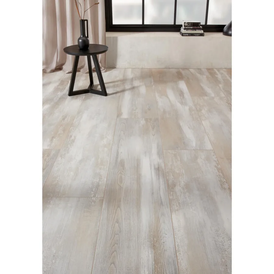 Laminaat met kalk eiken kleur. Met V-groef aan korte en lange zijde. Antistatisch en geschikt voor vloerverwarming en -koeling. 8 mm dik. 5 stuks per verpakking