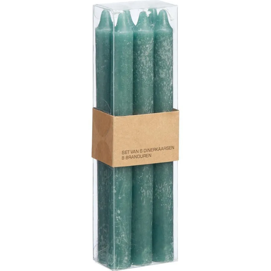 Kwantum Kaarsen & Theelichten|Kaarsen & Theelichten*S/6 Dinerkaars Rustiek Donkergroen Dr.Groen