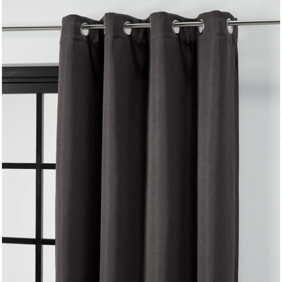 Verduisterend kant en klaar gordijn antraciet. Inclusief ringen. 135 cm breed.