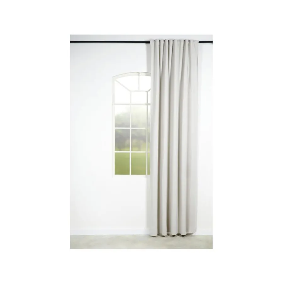 Kant en klaar gordijn. Beige. Breedte 140 cm en hoogte 260 cm. De stof is verduisterend.