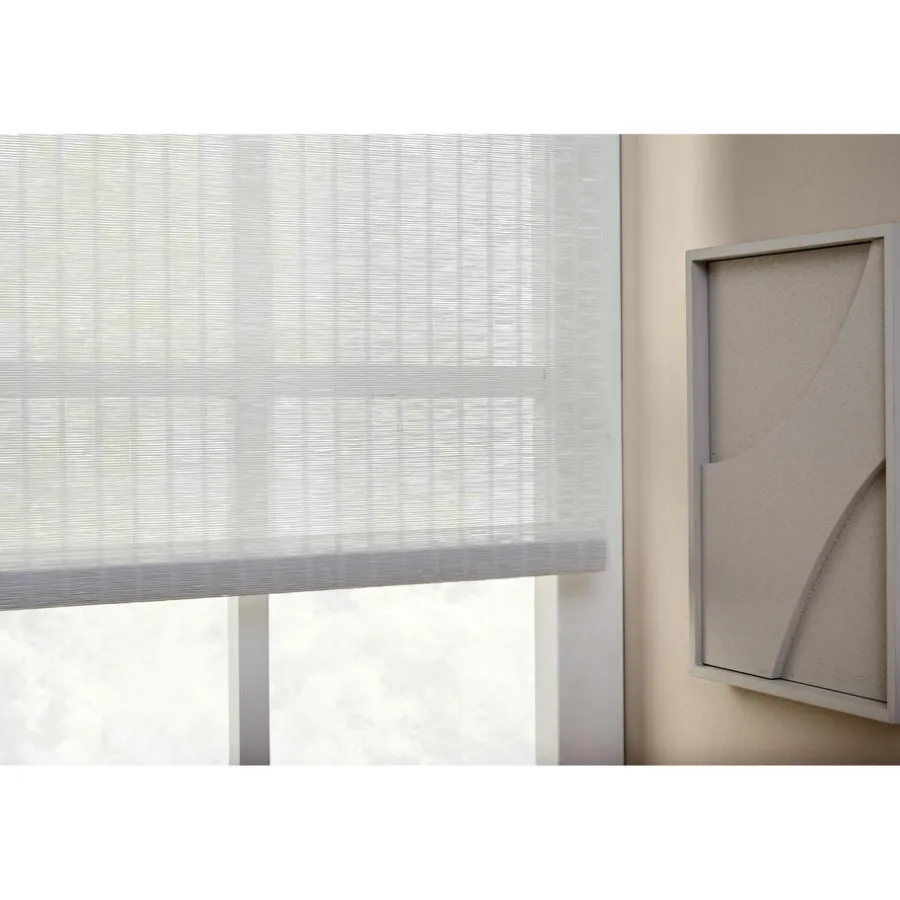 Transparant rolgordijn wit met kenmerkende structuur. Op maat te maken en volledig naar wens samen te stellen met een ruime keuze uit accessoires en uitvoeringen. Elektrische bediening en zijgeleiding is mogelijk. Ook geschikt voor draaikiepramen.