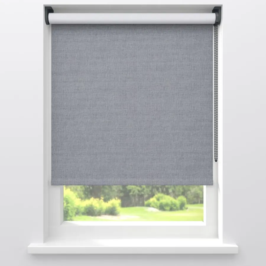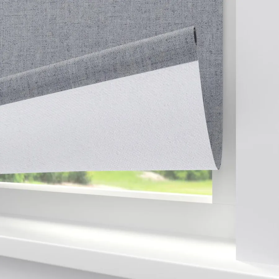 Verduisterend rolgordijn grijs gemêleerd met verschillende grijstinten. De witte achterzijde zorgt voor volledige verduistering. Ideaal voor slaapkamers maar ook te gebruiken voor keukens en andere woonruimtes. Op maat te maken en volledig naar wens samen te stellen met een ruime keuze uit accessoires en uitvoeringen. Elektrische bediening en zijgeleiding is mogelijk. Ook geschikt voor draaikiepramen. Eenvoudig met een vochtige doek af te nemen.