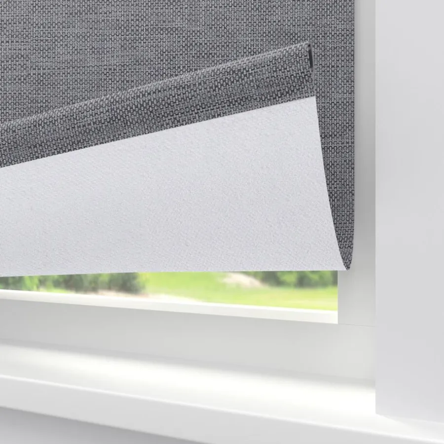 Verduisterend rolgordijn grijs gemêleerd met structuur. De witte achterzijde zorgt voor volledige verduistering. Ideaal voor slaapkamers maar ook te gebruiken voor keukens en andere woonruimtes. Op maat te maken en volledig naar wens samen te stellen met een ruime keuze uit accessoires en uitvoeringen. Elektrische bediening en zijgeleiding is mogelijk. Ook geschikt voor draaikiepramen. Eenvoudig met een vochtige doek af te nemen.