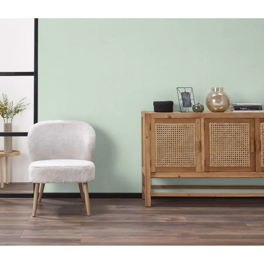 Vliesbehang mintkleurig met licht reliëf. Goed afwasbaar. Voorzien van het FSC-keurmerk. 10 meter per rol.