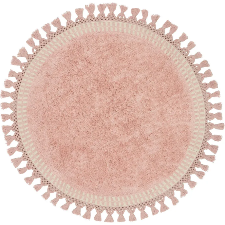 Rond vloerkleed Hana in een roze kleur. Dit vloerkleed bestaat uit getuft katoen en is handgemaakt. ø100 centimeter.