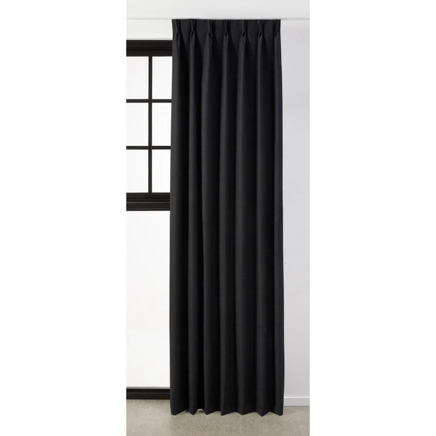 Verduisterende gordijnstof Toby in de kleur zwart is stijlvol en van uitstekende kwaliteit. Ben jij op zoek naar een prachtige verduisterende gordijnstof voor in de woonkamer, of juist voor in de slaapkamer? Met gordijnstof Toby kan het allemaal Stevig, vormvast en slijtvast. Dit black-out gordijn is aan de achterkant voorzien van een coating die ervoor zorgt dat dit gordijn 100% verduisterend is. Deze coating zorgt dat er geen licht door de stof komt. Daarom is de achterkant meestal wit en de voorkant is de gewone gordijnstof. Een black-out gordijn voelt wat stugger aan. Deze gordijnstof houdt, in tegenstelling tot dim-outs 100% het zonlicht tegen. Bij de confectie van deze kwaliteit kunnen kleine gaatjes ontstaan. Dit is inherent aan de stof en kan niet voorkomen worden. 140 cm breed.