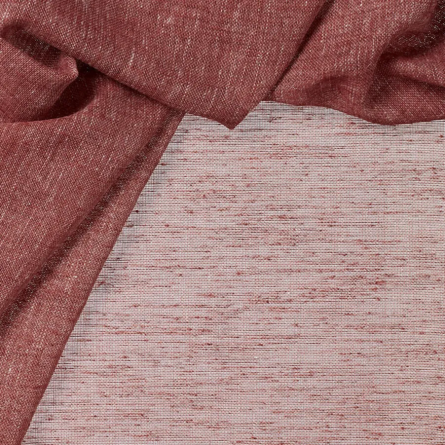Inbetween Milou Rood is een transparante gordijnstof met een kleurmelange, gemaakt van 85% polyester en 15% linnen. Door de mix van materialen heeft Milou een natuurlijke uitstraling in een prachtige linnenlook. Wil je jouw huis meer sfeer geven met gordijnen maar wel je privacy behouden? Dat kan gemakkelijk met transparante gordijnen. Deze gordijnen bieden een ideale oplossing tegen inkijk bij ieder raam. Het filtert namelijk licht van buiten af, waardoor je nog wel naar buiten kunt kijken, maar het zicht naar binnen wordt beperkt. 300 cm hoog.