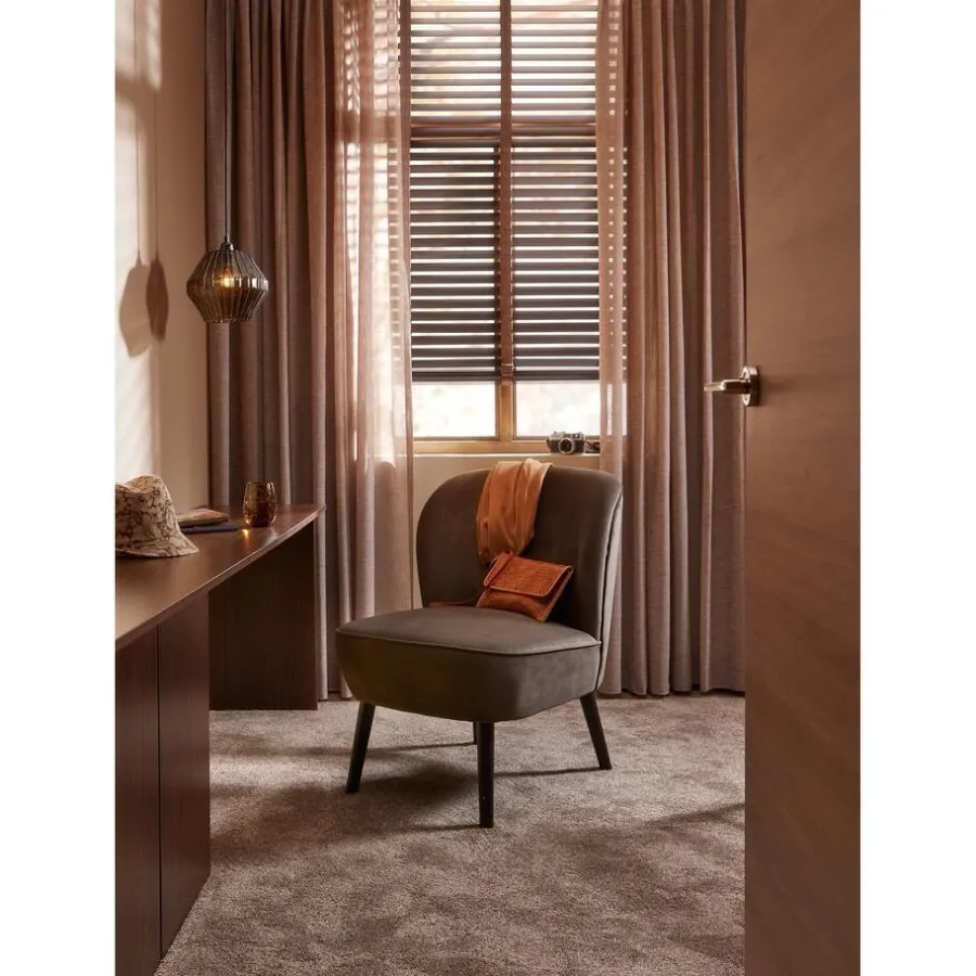 Inbetween Pippa Bruin is een transparante gordijnstof met een kleurmelange, gemaakt van 92% polyester en 8% linnen. Door de mix van materialen heeft Pippa een natuurlijke uitstraling en linnenlook. Behoefte aan meer licht maar heb je wel de behoefte aan de nodige privacy? Kies dan voor een inbetween in de woonkamer en combineer deze met een mooi verduisterend overgordijn. 300 cm hoog.